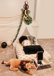 All of our premium wood tents come complete with plush hypoallergenic mattresses and mattress covers, fluffy pillows, snuggly blankets light effects, and decorations. Sit back while we transform your room into an enchanting party space, complete with themed cushions, lights, garland or bunting and personalized accents!